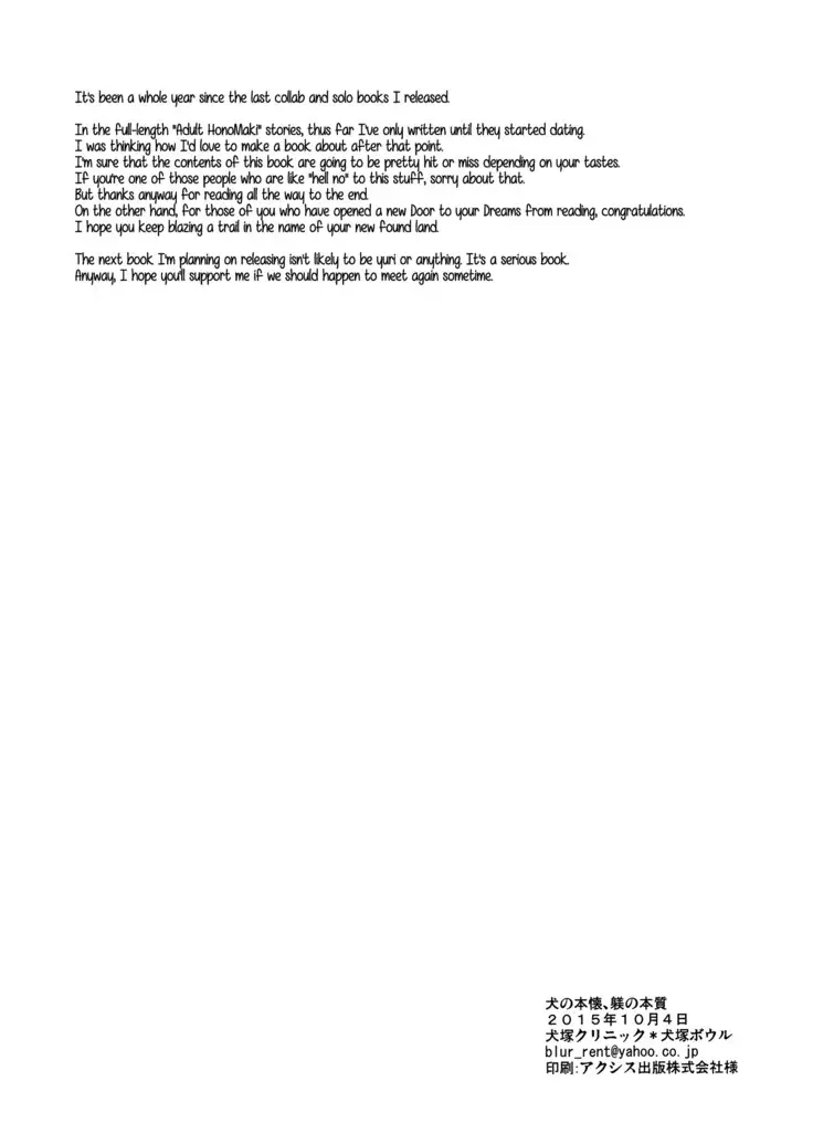 (SC2015 Autumn) [Inuzuka Clinic (Inuzuka Bouru)] Inu no Honkai, Shitsuke no Honshitsu | The Dog's Desire and the Reality of Discipline (Love Live!) [English] [GiB]
