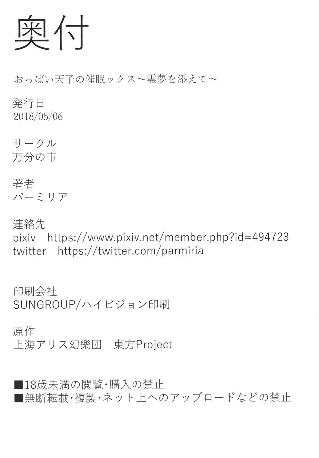 (Reitaisai 15) [Manbun no Ichi (Parmiria)] Oppai Tenshi no Saiminx ~Reimu o Soete~ (Touhou Project)