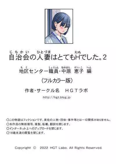 Jichikai no Hitozuma wa Totemo Ecchi Deshita. 2 Chiku Center Shokuin Nakahara Keiko Hen | Neighborhood Associations Part 2: Keiko
